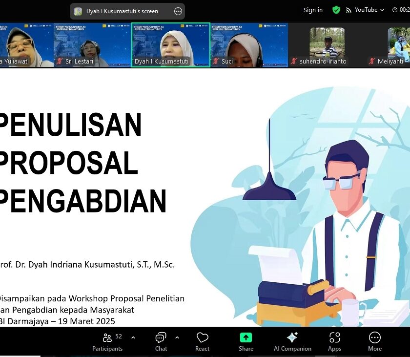 MATALAMPUNG.COM, Bandarlampung – Lembaga Penelitian dan Pengabdian kepada Masyarakat (LPPM) Institut Informatika dan Bisnis (IIB) Darmajaya kembali menunjukkan komitmennya dalam meningkatkan kualitas riset dan pengabdian kepada masyarakat dengan menggelar Workshop Penulisan Proposal Penelitian dan Pengabdian kepada Masyarakat. Kegiatan yang berlangsung secara daring melalui Zoom Meeting pada Rabu, 19 Maret 2025, ini diikuti oleh seluruh dosen aktif di lingkungan IIB Darmajaya.